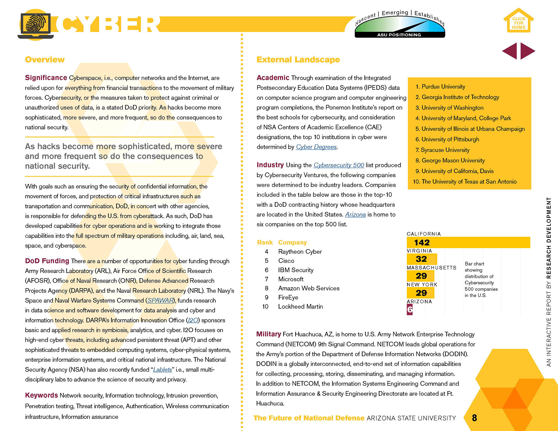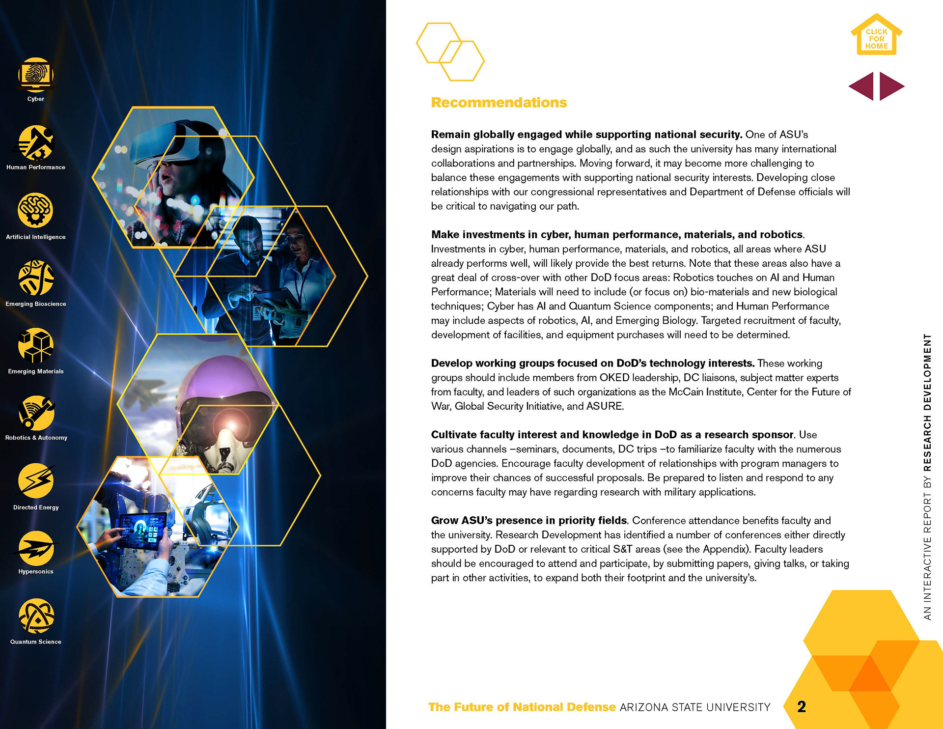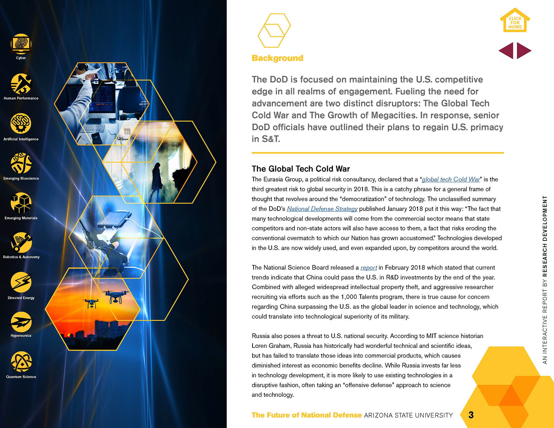 The example below was designed for the Department of Defense and features an icon-driven dynamic menu giving the user options to link dynamically throughout the document. This file was meant as an email attachment so the file size needed to me manageable while keeping the images crisp.